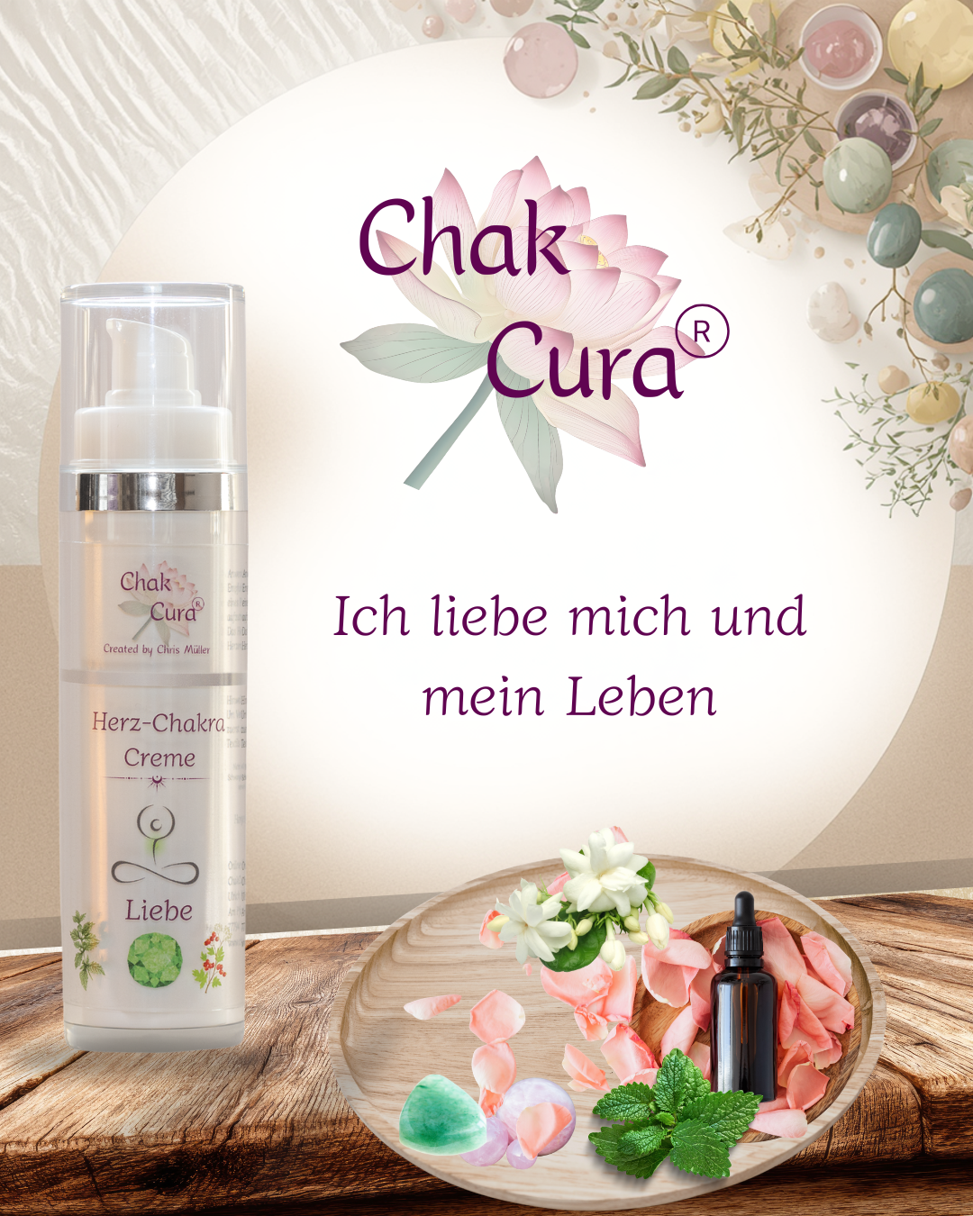Die ChakCura-Cremes sind eine einzigartige Pflegeserie, die Hautpflege mit Energiearbeit vereint. Jede Creme ist speziell auf ein Chakra abgestimmt und enthält ausgewählte Kräuter, ätherische Öle, Edelsteine und Farben, die deine Energiezentren harmonisieren. Eine einache, effektive Möglichkeit, Körper und Seele in Balance zu bringen - täglich spürbar!